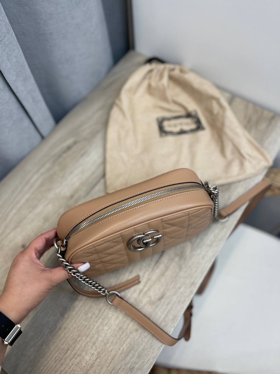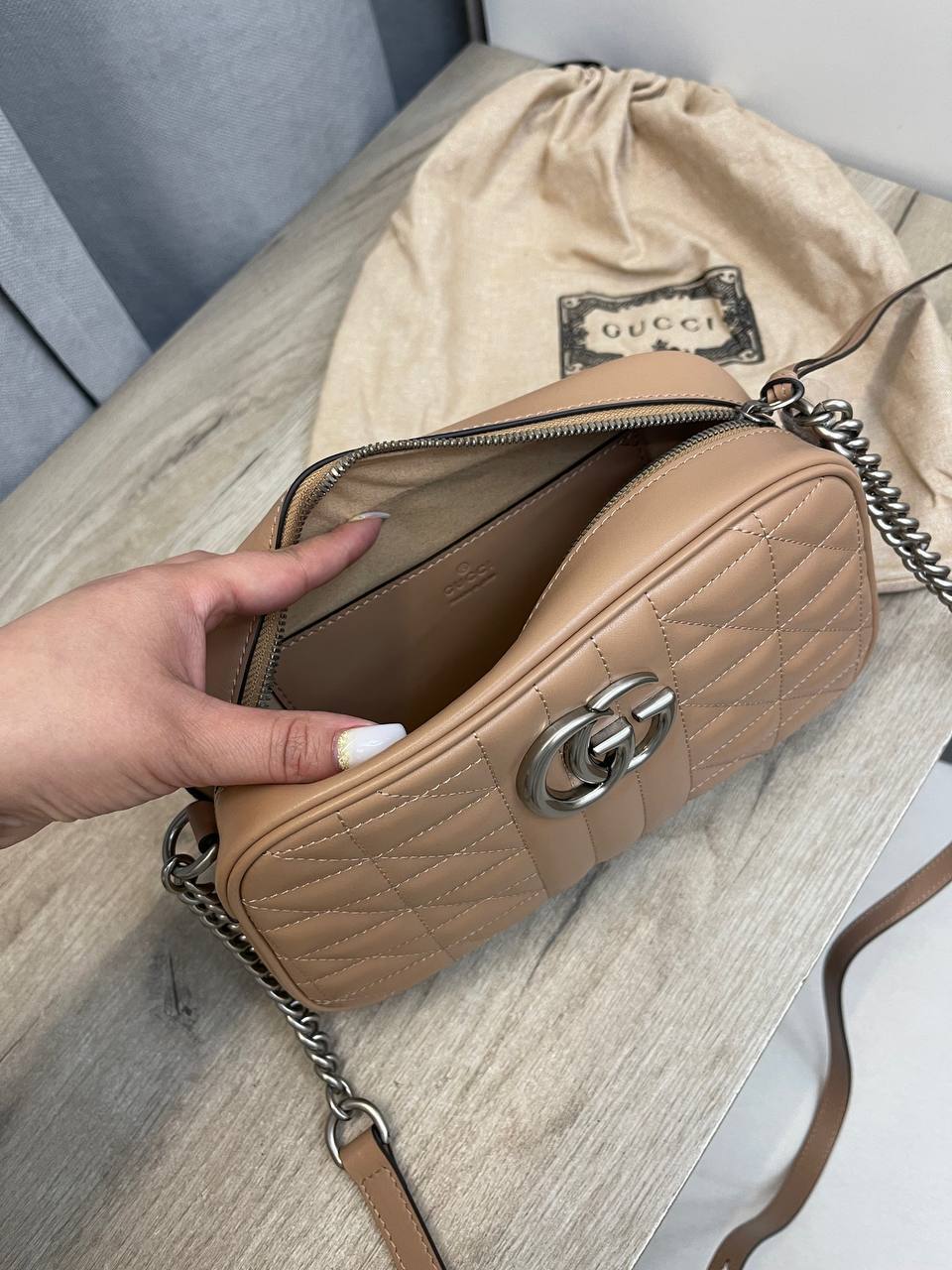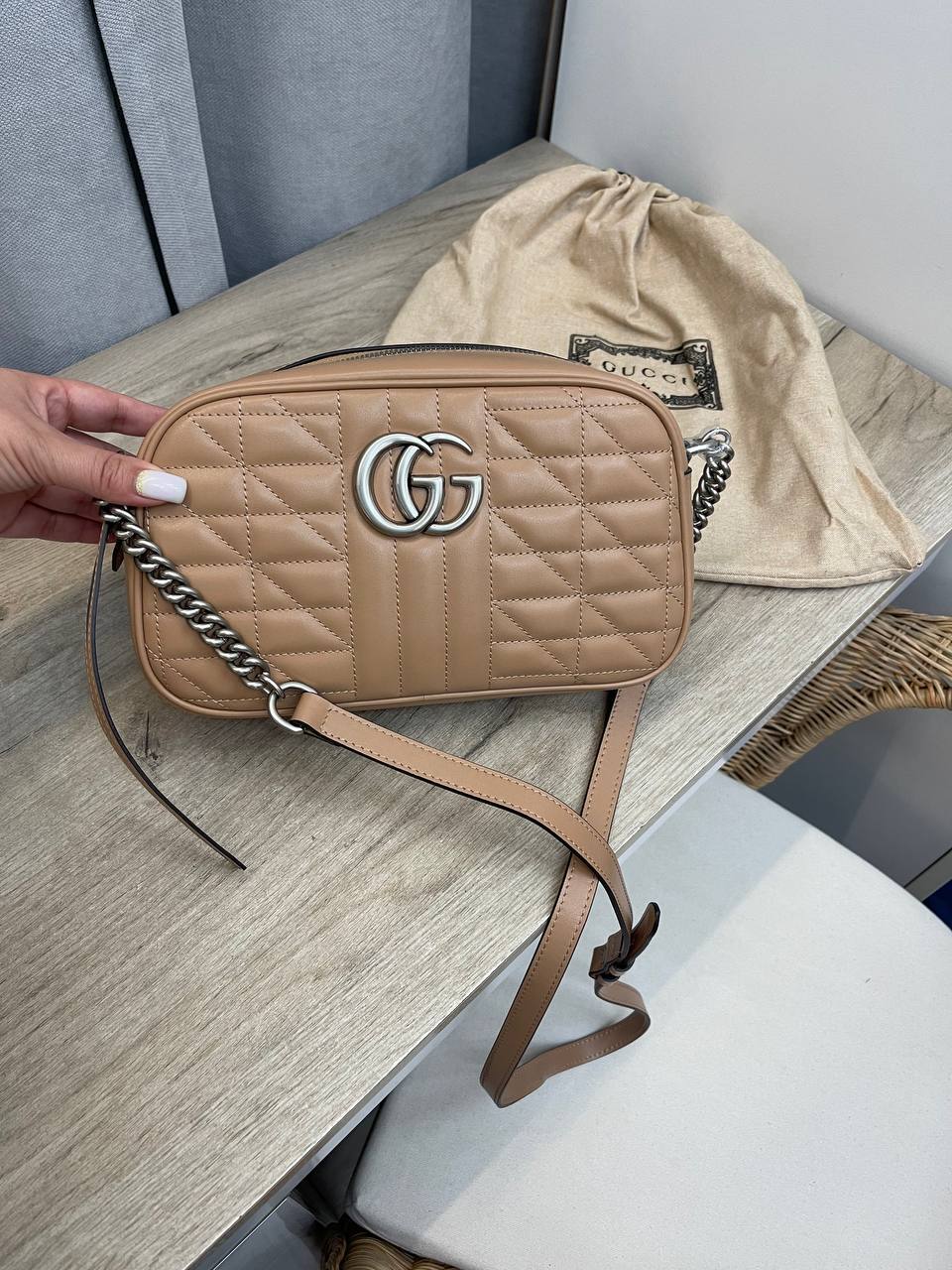 Gucci, как один из ведущих игроков на рынке люксовой моды, всегда стремится к инновациям и оригинальности. Эта сумка через плечо не является исключением; она прекрасно вписывается в любой образ, будь то повседневный или вечерний. Благодаря своему универсальному дизайну, она станет отличным дополнением как для деловых встреч, так и для романтических свиданий. Сумка представлена в стильной цветовой гамме, что позволяет легко сочетать её с различными нарядами, от классических до более кэжуал.