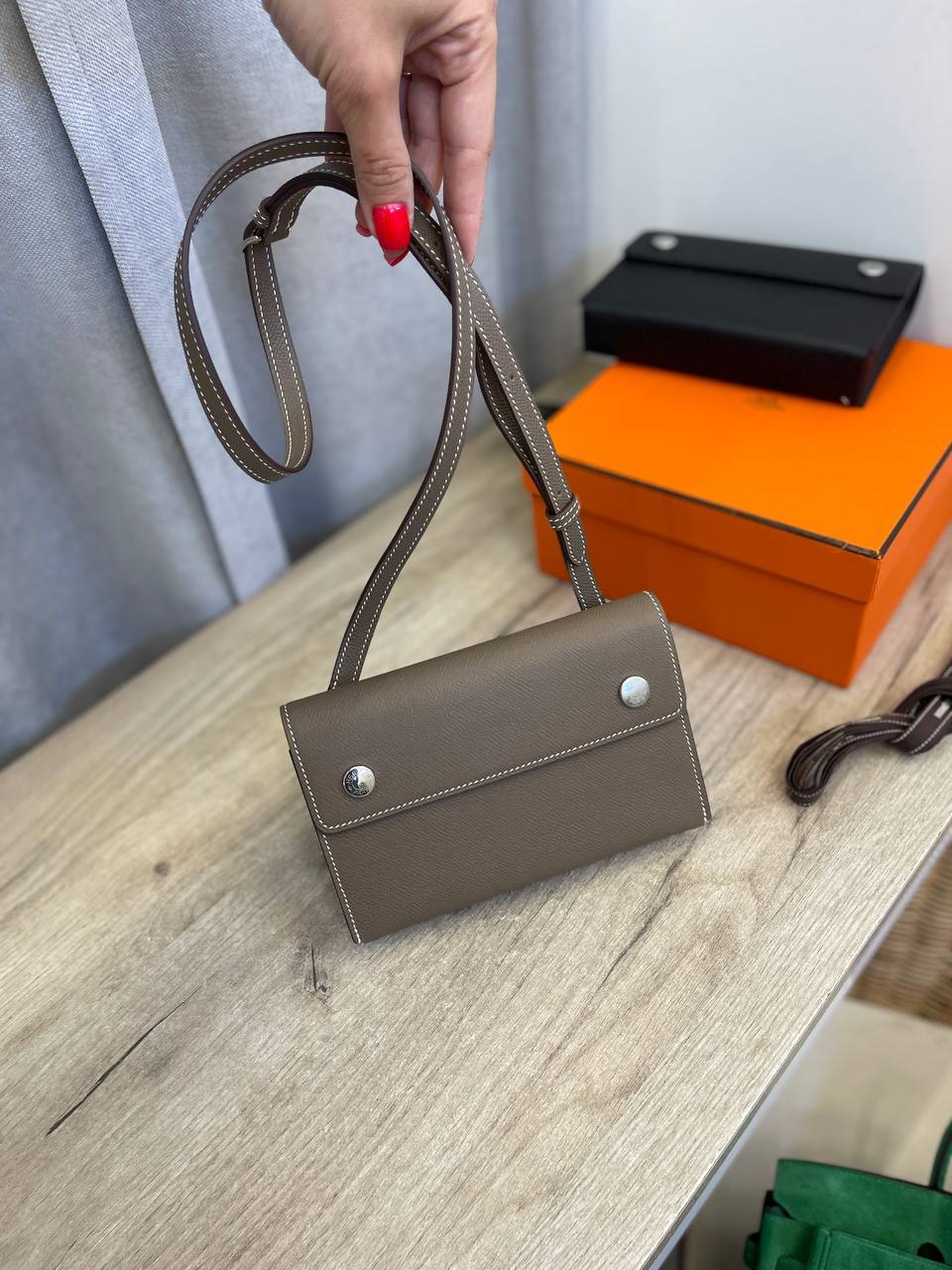 В мире моды, где каждый элемент гардероба становится отражением индивидуальности, премиум сумка Hermesnap Wallet из кожи Epsom занимает особое место. Этот аксессуар не просто дополнение к образу, а истинное произведение искусства, созданное для женщин, которые ценят качество и стиль. Каждая деталь этой сумки продумана до мелочей, что делает её не только визуально привлекательной, но и практичной в использовании. Кожа Epsom, из которой изготовлена модель, отличается высокой прочностью и легкостью в уходе, что позволяет сохранять её безупречный вид на протяжении многих лет.