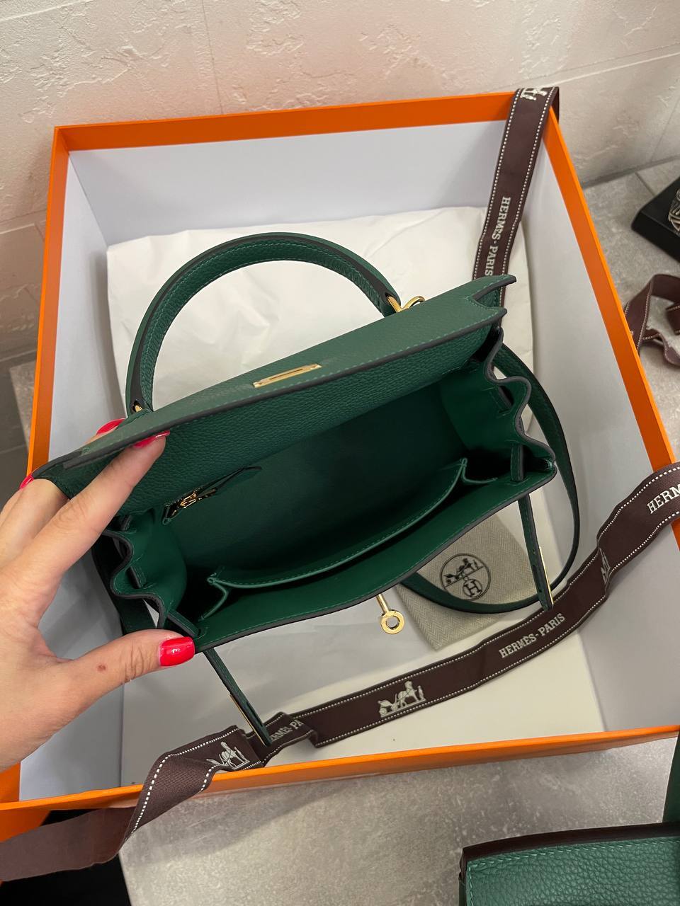 Неудивительно, что сумка Kelly стала иконой стиля и предметом желания для многих женщин по всему миру. Её дизайн вдохновлён классическими формами и в то же время остаётся актуальным благодаря современным акцентам. Эта модель прекрасно подходит для женщин, которые ценят стиль и комфорт. Сумка легко открывается и закрывается, что делает её использование удобным в повседневной жизни. Она способна вместить все необходимые вещи, не теряя при этом своей изящной формы.
