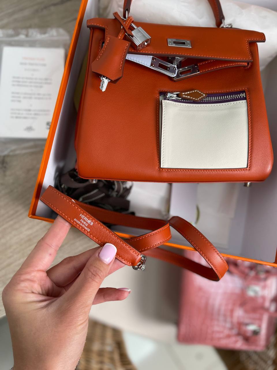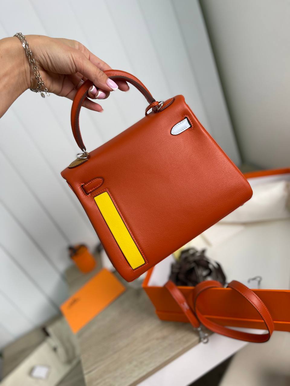 Каждая деталь сумки Kelly 25 продумана для того, чтобы обеспечить максимальный комфорт и практичность. Удобные ручки и ремень позволяют носить её как в руках, так и на плече, что делает использование сумки ещё более комфортным. Эта модель станет не только стильным дополнением вашего гардероба, но и верным спутником в любых жизненных ситуациях. Позвольте себе насладиться роскошью и качеством, которые предлагает Hermes, и сделайте свою жизнь ярче с помощью этой удивительной сумки.