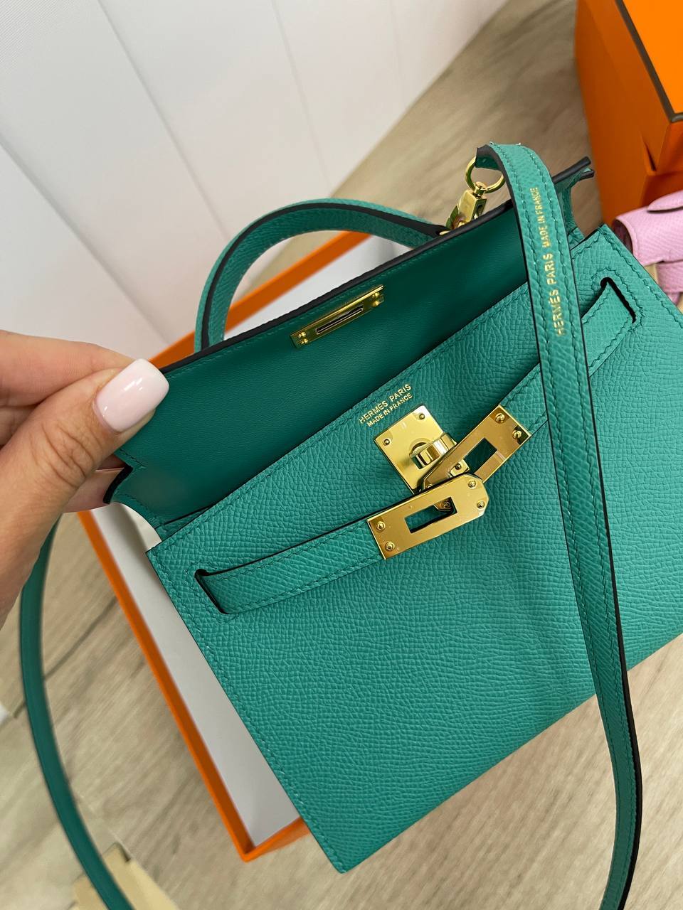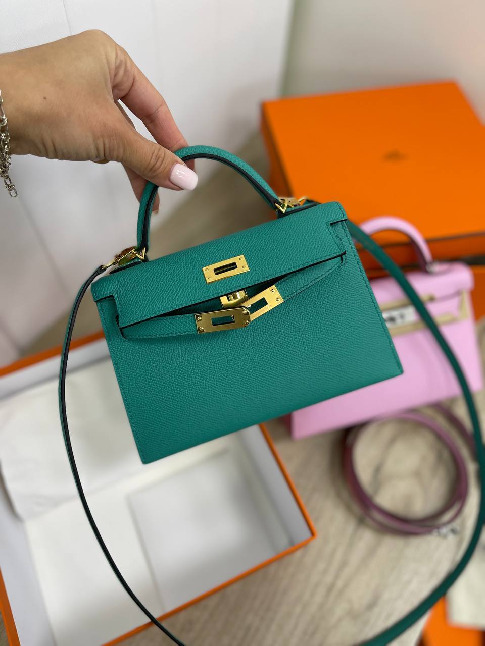 Особое внимание стоит уделить функциональности этой сумки. Несмотря на свои компактные размеры, Kelly mini предлагает достаточно пространства для хранения всех необходимых мелочей — от косметики до кошелька. Удобная ручка и съемный ремешок обеспечивают комфорт при ношении, позволяя выбрать наиболее удобный способ использования. Это делает её идеальным решением для активных женщин, которые не готовы жертвовать стилем ради удобства.