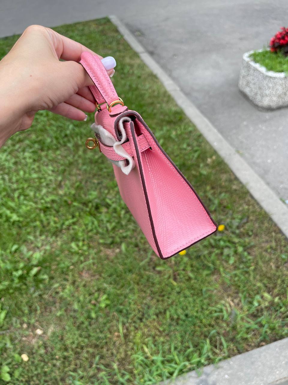 Трендовая сумка розовая Kelly Mini Lezard от Hermes для стильных женщин