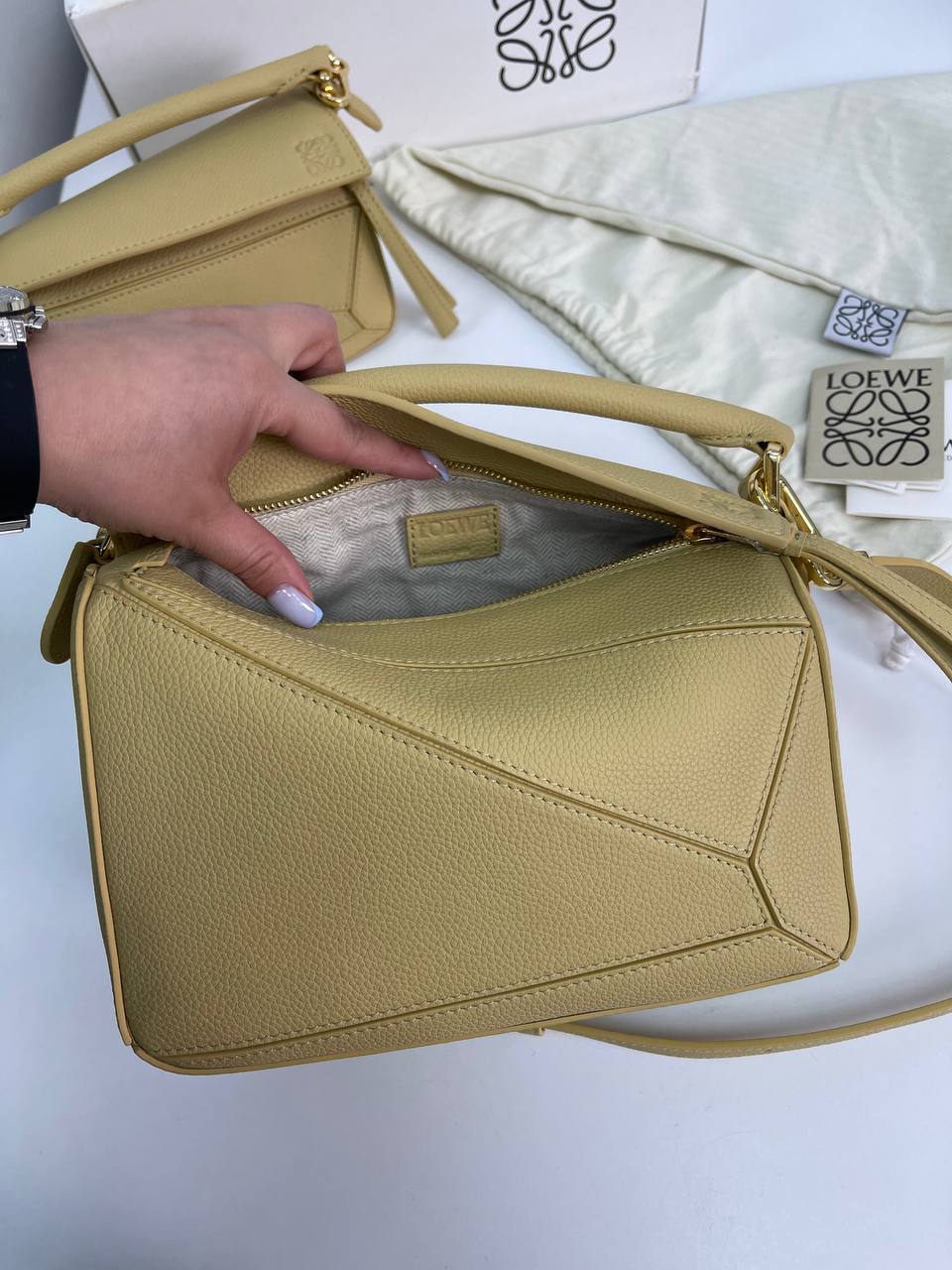 Эта сумка идеально подходит для деловых встреч, прогулок по городу или романтических свиданий. Loewe BP-32442 выделяется своей оригинальной формой и продуманной компоновкой, что делает её универсальным аксессуаром для любого случая. Женщина, выбирающая эту модель, получает не только стильный предмет гардероба, но и возможность проявить свою креативность в сочетании с различными нарядами. Важно отметить, что сумка Loewe BP-32442 легко комбинируется как с классической одеждой, так и с более повседневными образами, добавляя в них нотку утонченности и шарма.