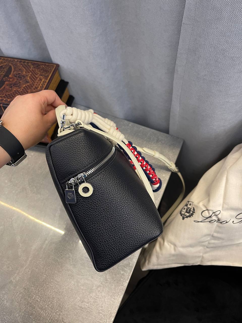 Неоспоримым преимуществом сумки Loro Piana является ее универсальность. Она легко комбинируется с различными стилями одежды — от классических нарядов до более кэжуал образов. Вы можете смело носить ее с элегантным платьем на вечернем мероприятии или с джинсами и свитером в повседневной обстановке. Эта сумка станет акцентом вашего образа, привлекая восхищенные взгляды окружающих и подчеркивая вашу уверенность и стиль. Выбор Loro Piana — это выбор в пользу качества, которое ощущается не только визуально, но и на ощупь.