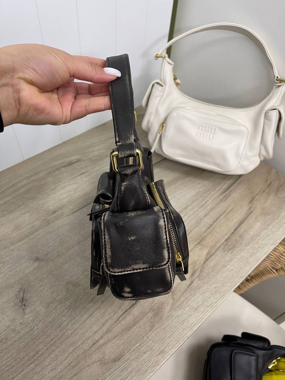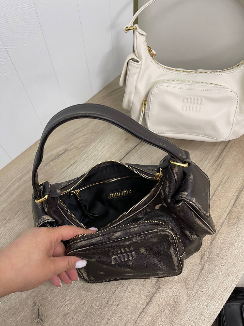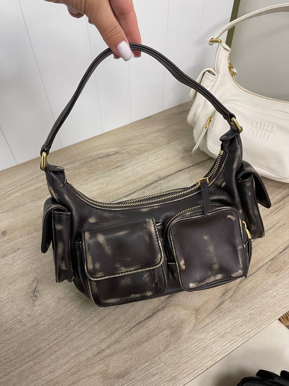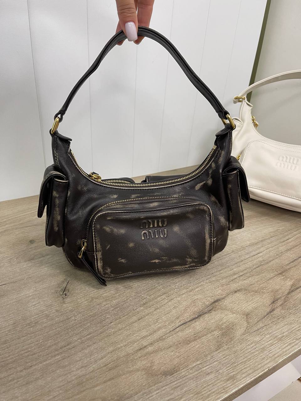 Каждая деталь этой сумки говорит о безупречном качестве и внимании к нюансам. Использование премиум-кожи и высококлассной фурнитуры создает ощущение роскоши, которое невозможно не заметить. Женская сумка через плечо от Miu Miu идеально подходит для тех, кто ценит комфорт и стиль в повседневной жизни. Она прекрасно сочетается с различными нарядами, от классических до более смелых и экстравагантных. Модницы, выбирающие эту сумку, могут быть уверены, что она станет ярким акцентом в их образе.