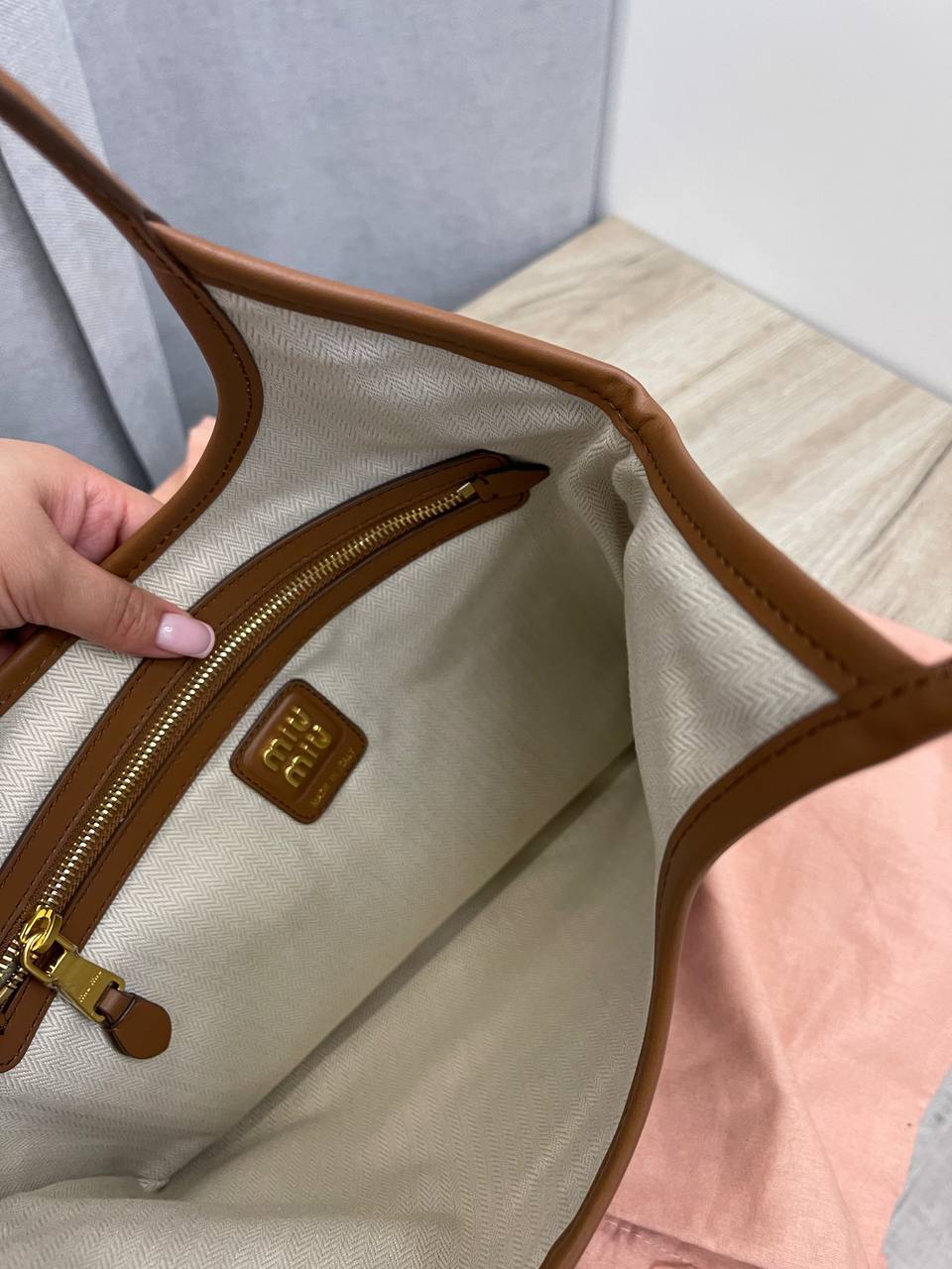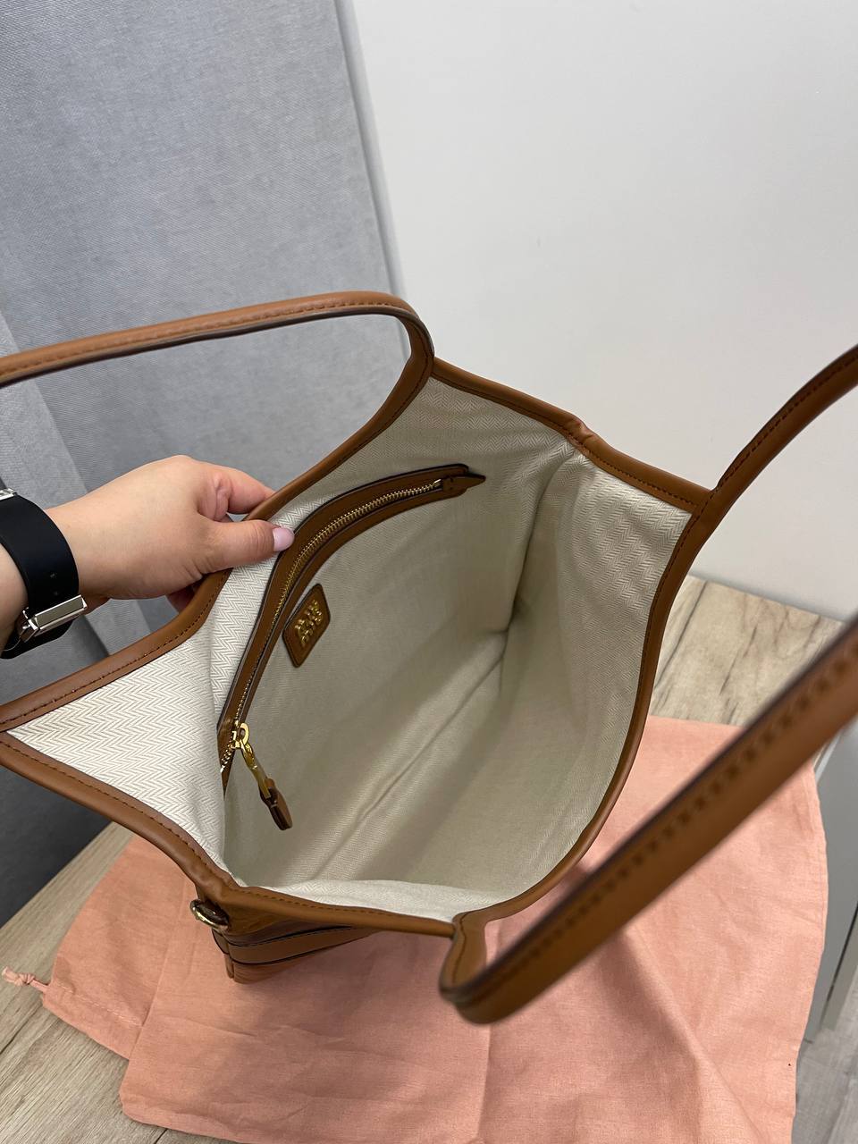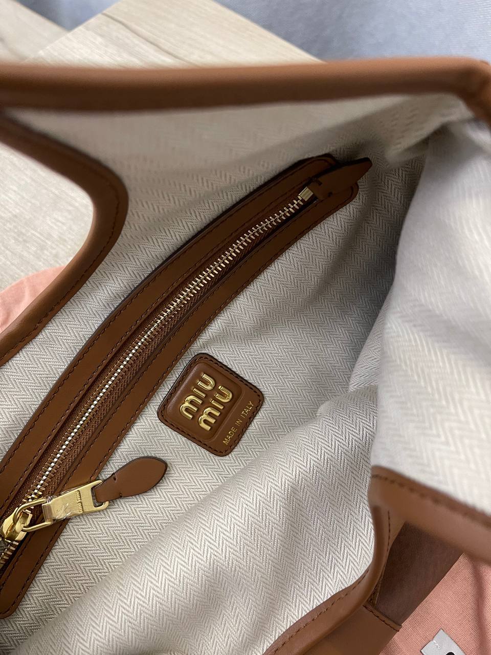 Изготовленная из высококачественной кожи, эта сумка сочетает в себе роскошь и практичность. Коричневый оттенок придаёт ей универсальность, позволяя легко сочетать её с различными образами, от повседневных до вечерних. Каждый элемент, от швов до фурнитуры, выполнен с безупречной точностью, что подтверждает статус Miu Miu как одного из лидеров в мире люксовой моды. Эта сумка станет не только стильным дополнением, но и верным спутником в повседневной жизни, обеспечивая необходимую функциональность и комфорт.
