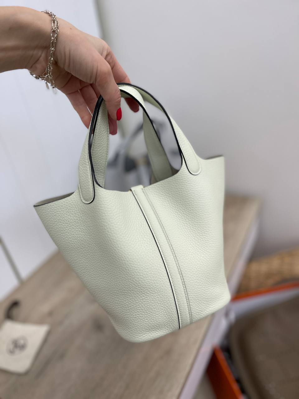 Каждая деталь сумки Picotin Togo продумана до мелочей. Уникальная форма и лаконичные линии делают её не только стильной, но и функциональной. Вместительная структура позволяет легко разместить все необходимые вещи, а при этом сохранить аккуратный и изящный вид. Бренд Hermes славится своим вниманием к деталям, и эта сумка не исключение: аккуратные швы и качественная фурнитура подчеркивают статус и вкус своей обладательницы. Она станет идеальным дополнением как для делового стиля, так и для более расслабленного образа.