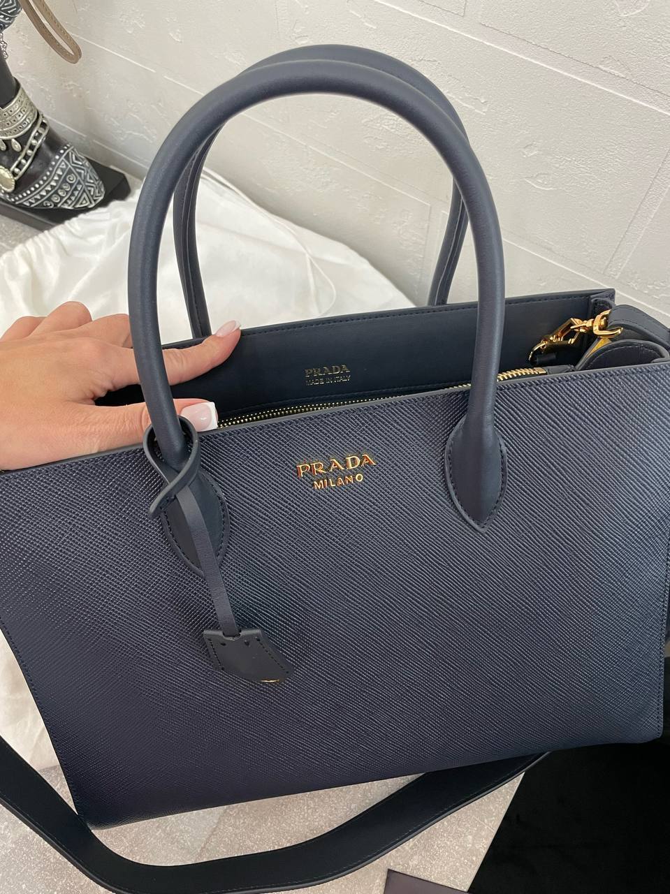 Сумка через плечо от Prada — это не только стиль, но и удобство. Ее можно носить как в руках, так и на плече, что делает ее незаменимым спутником в повседневной жизни. Просторное внутреннее отделение позволяет разместить все необходимые вещи, а продуманные карманы помогут организовать пространство. Носить такую сумку — значит быть всегда на высоте, не беспокоясь о том, что что-то может потеряться или быть не на своем месте.