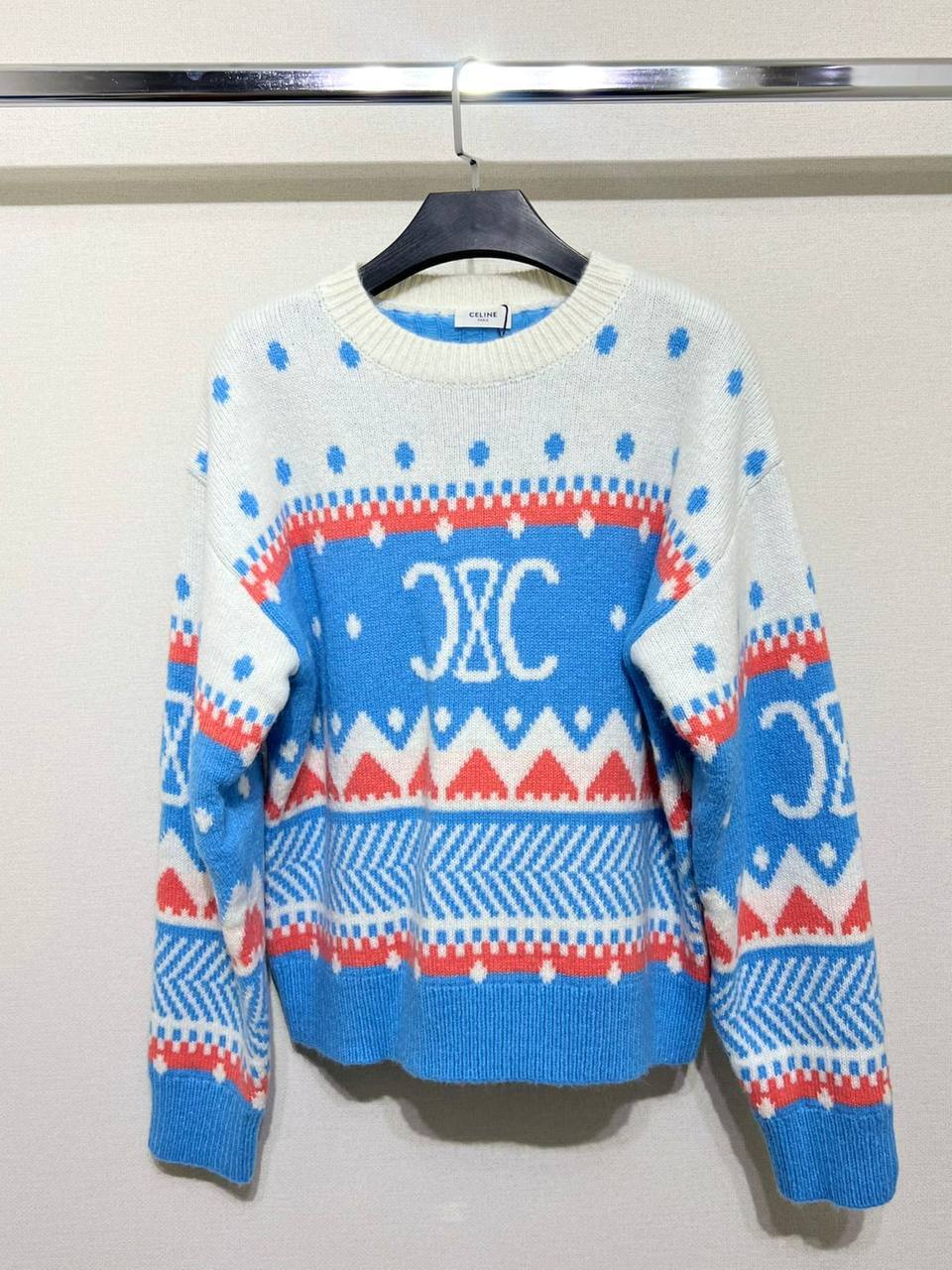 Свитер от бренда Celine выполнен из высококачественных материалов, что обеспечивает не только стильный внешний вид, но и комфорт в носке. Мягкость ткани приятно ласкает кожу, а продуманный крой создает эффект легкости и свободы движений. Это делает его идеальным вариантом как для повседневных выходов, так и для более торжественных мероприятий, где требуется выглядеть безупречно. Каждая деталь свитера продумана до мелочей, что позволяет ему оставаться актуальным и востребованным на протяжении нескольких сезонов.