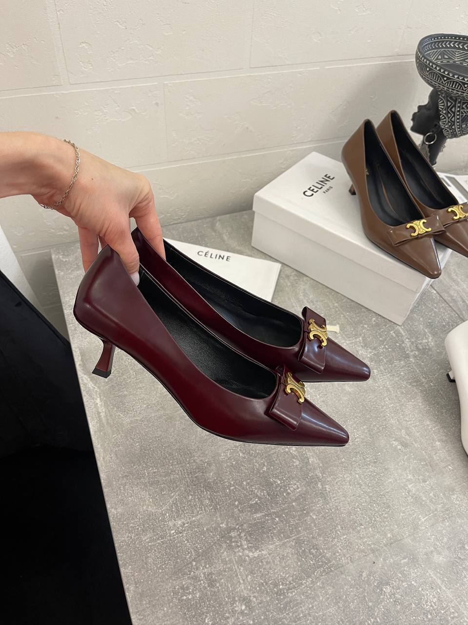 С первых мгновений, когда вы надеваете эти туфли, вы ощущаете, как они обнимают ваши ноги, обеспечивая максимальный комфорт и поддержку. Их уникальный дизайн позволяет легко сочетать их с разными стилями одежды — от классического костюма до более расслабленного, но всё же стильного образа. Дизайнерские туфли Celine BP-51685 созданы для того, чтобы выделяться, и они не оставят равнодушными ни вас, ни окружающих. Каждое ваше движение будет сопровождаться лёгкостью и грацией, благодаря чему вы будете чувствовать себя уверенно в любой ситуации.