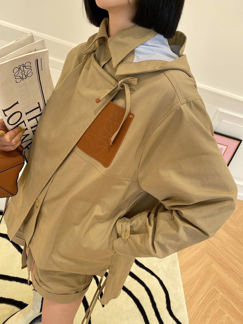 Легкость и комфорт — вот что отличает эту ветровку от Loewe. Она идеально подходит для весенних и осенних прогулок, когда хочется выглядеть стильно и при этом чувствовать себя уютно. Уникальная текстура ткани и продуманные детали делают эту куртку настоящим произведением искусства. Каждая деталь, от застежек до карманов, продумана до мелочей, что подчеркивает высокие стандарты качества, присущие бренду. Элегантный крой позволяет сочетать ветровку с различными элементами гардероба, будь то романтичное платье или классические джинсы, создавая бесконечные варианты для стильных образов.
