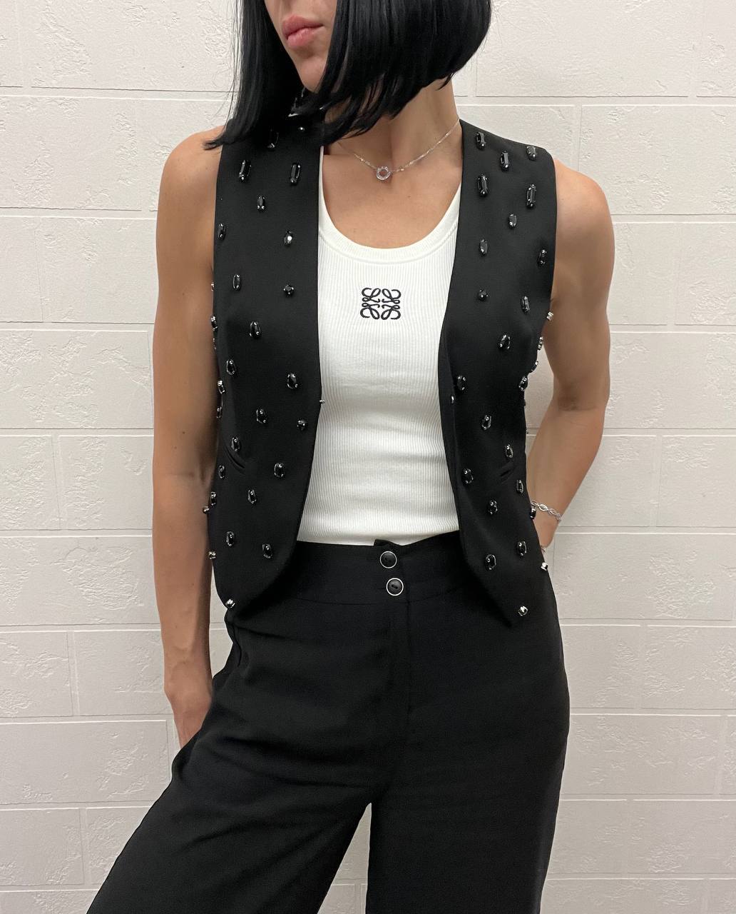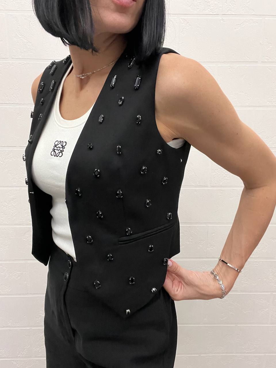 Каждая деталь жилета премиум Balmain BP-44441 продумана до мелочей. Его уникальный крой и высококачественная отделка делают его идеальным выбором как для повседневных образов, так и для особых случаев. Женщины, стремящиеся создать запоминающийся стиль, найдут в этом жилете идеального спутника. Он легко комбинируется с аксессуарами, позволяя экспериментировать с образами и находить свои уникальные сочетания. В этом жилете можно отправиться на деловую встречу, вечернюю прогулку или даже на светское мероприятие, оставаясь в центре внимания.